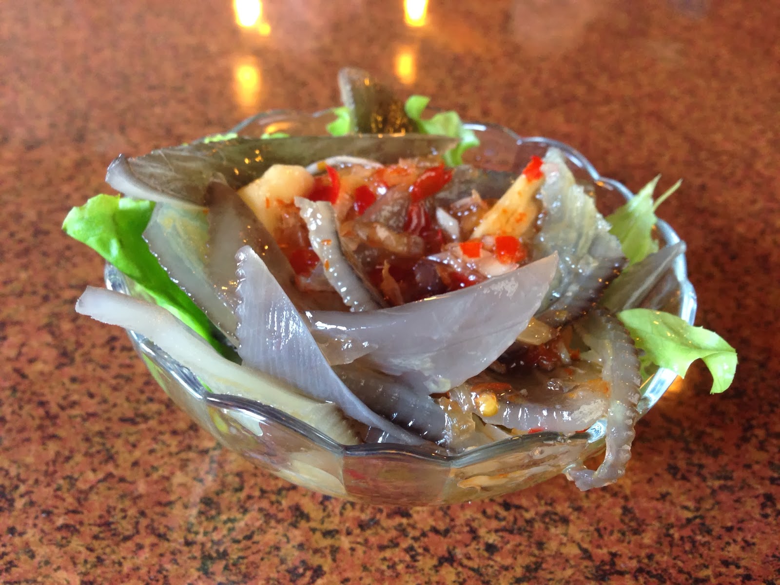 店家招待的涼拌魚皮,分辨不出甚麼魚實在是金拍謝...........太弱了吧我(淚