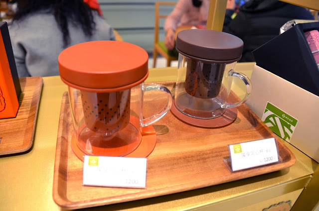 櫃台後面是包裝茶與泡茶器具的陳列販售櫃