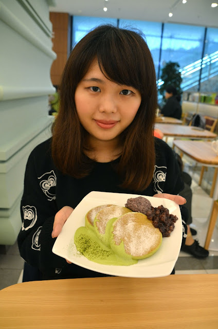 最近融化一堆少男少女的宇治金時鬆餅,厚厚的鬆餅,灑上白色糖霜粉末,紅豆泥與紅豆粒,最後淋上那濃濃的抹茶醬,呈現出的美感讓你不知從何下手破壞這美麗的畫面